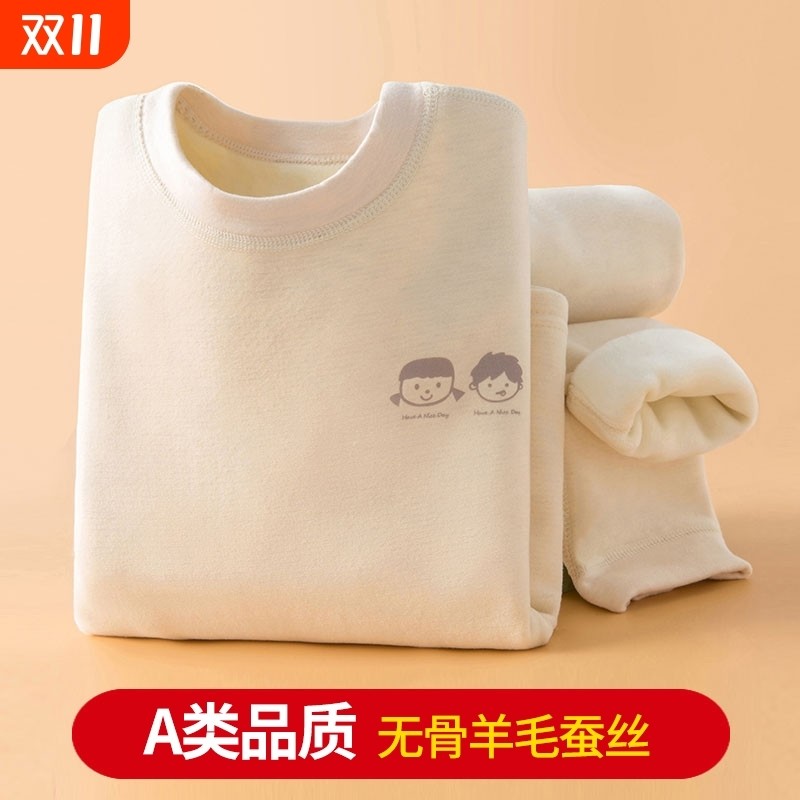 羊毛桑蚕丝儿童秋衣秋裤内衣套装秋冬德绒男女童保暖宝宝加绒加厚