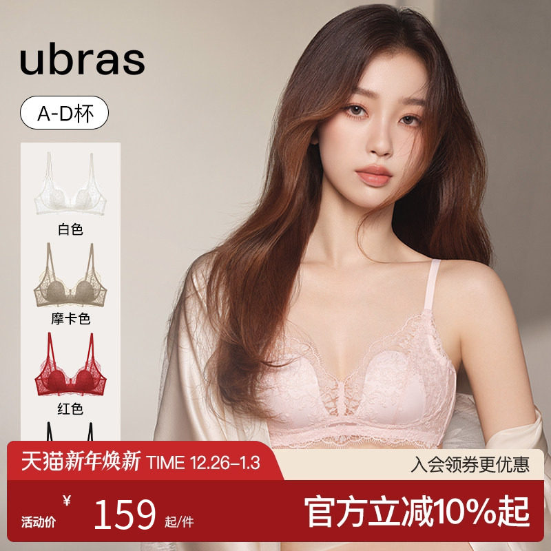 虞书欣同款ubras洛可可蕾丝兔耳杯大胸显小聚拢文胸内衣套装轻薄