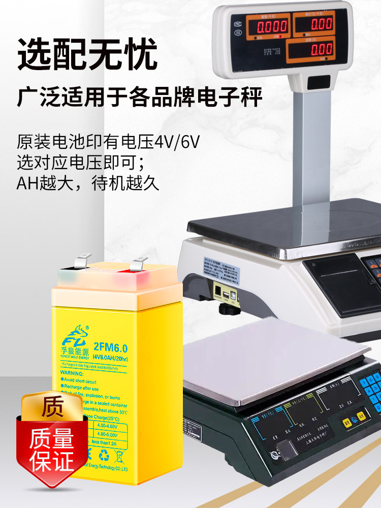 电子秤电池通用4V4ah20hr精准电子称蓄电瓶商用台秤专用4伏6v锂电