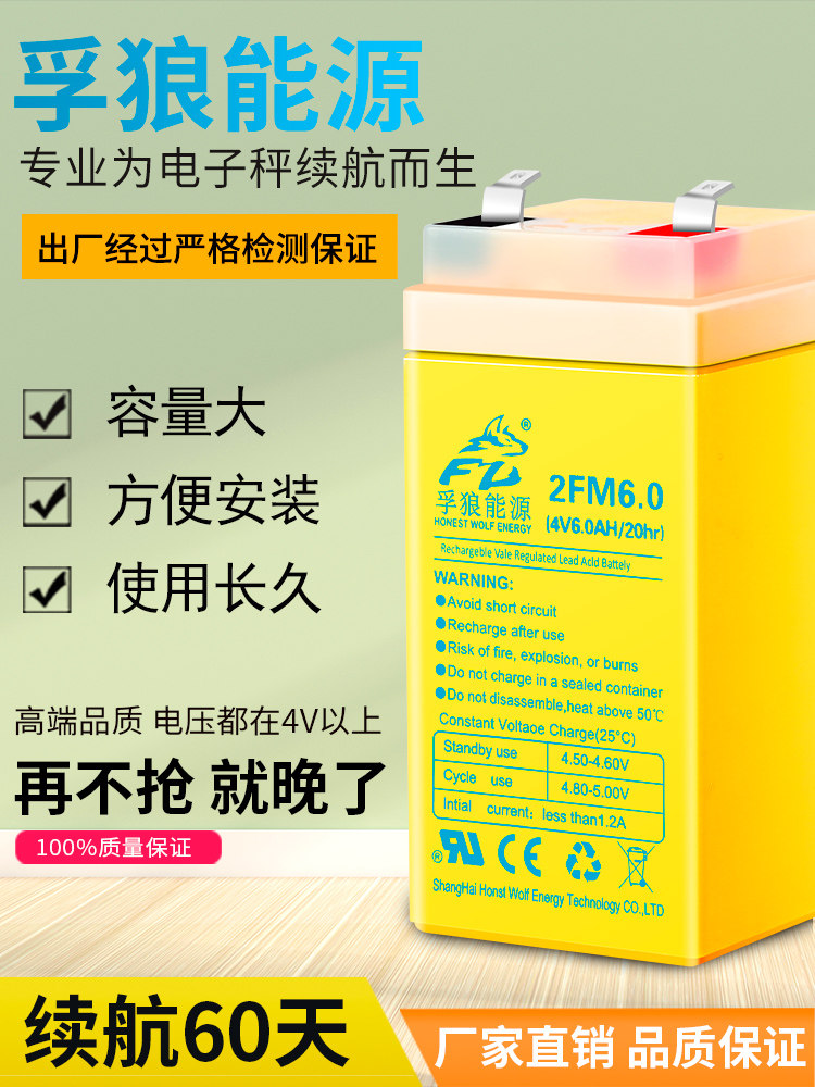 电子秤电池通用大容量30/150公斤称重台秤的专用电瓶4v铅酸蓄电池