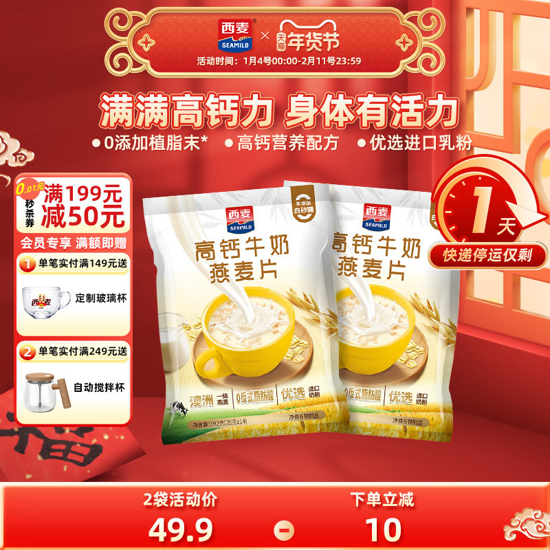 西麦高钙牛奶燕麦片392g*2袋独立装健康营养早餐懒人代餐冲饮速食