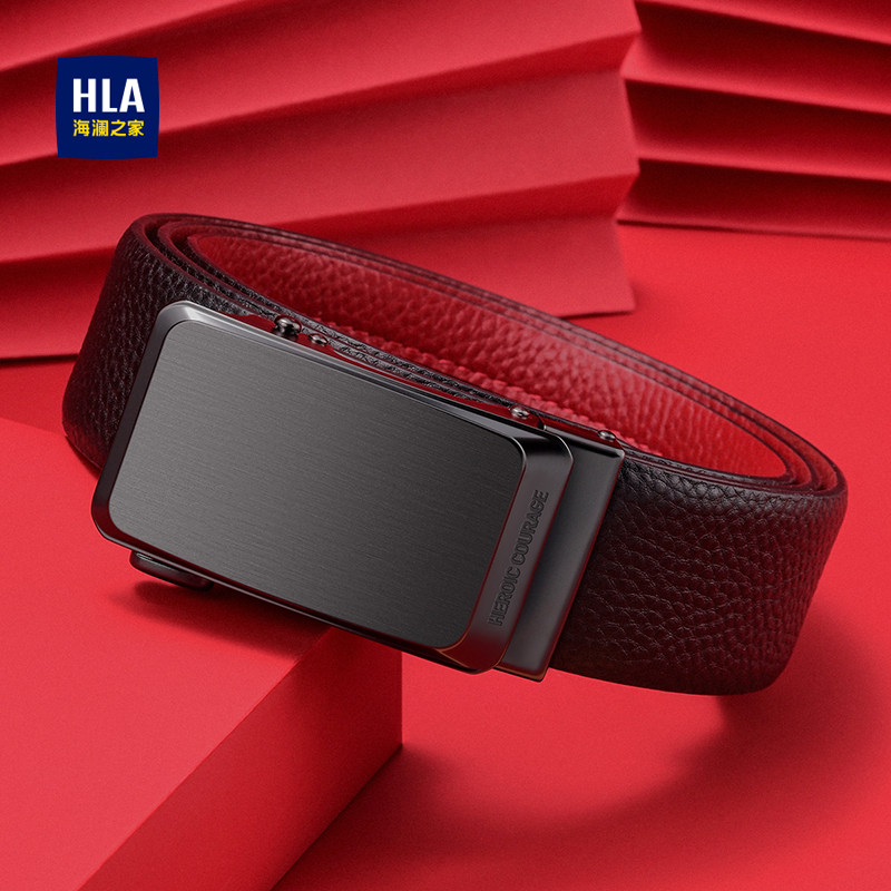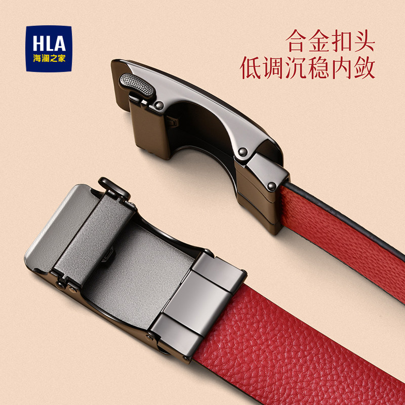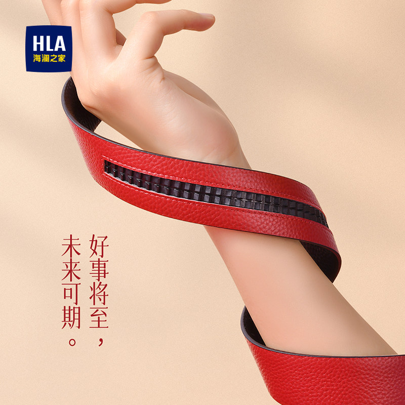 海澜之家男款头层牛皮皮带新款红色结婚本命年礼物腰带送男友裤带