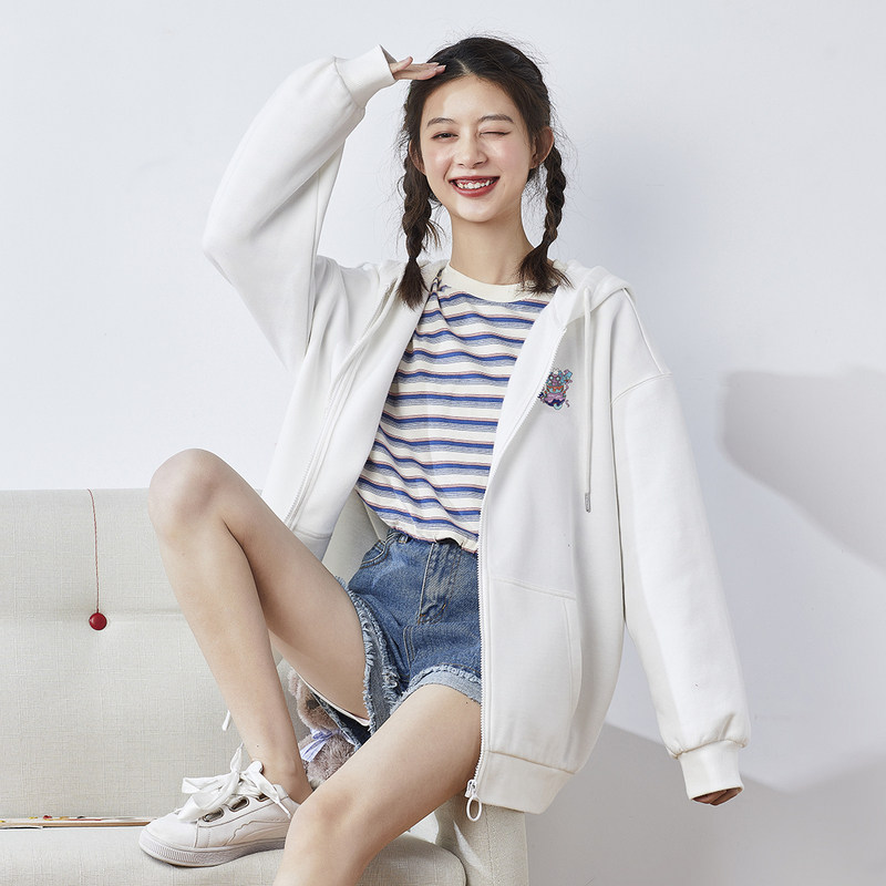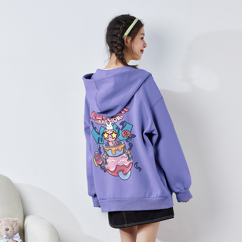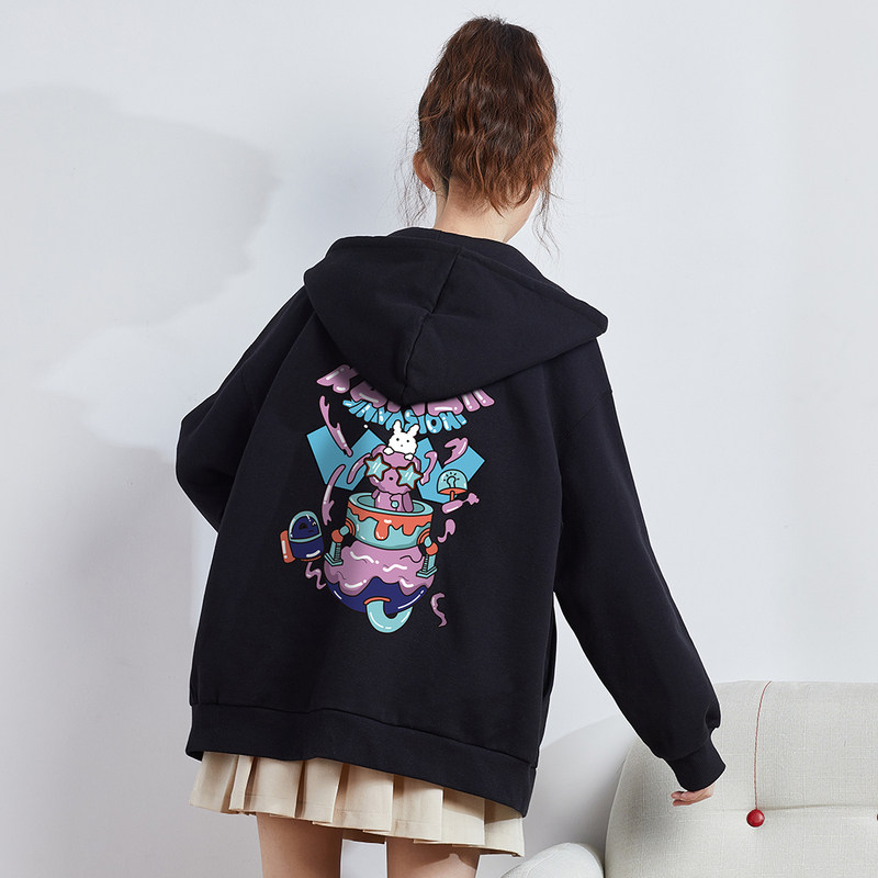唐狮外套女装春秋新款潮流连帽宽松卡通卫衣上衣女超好看外套