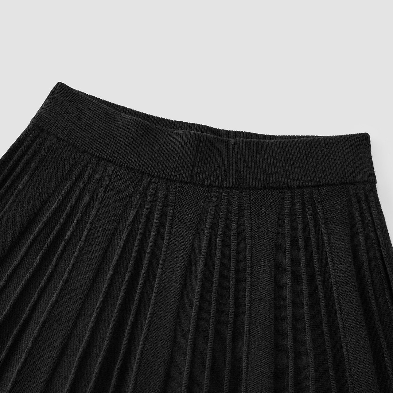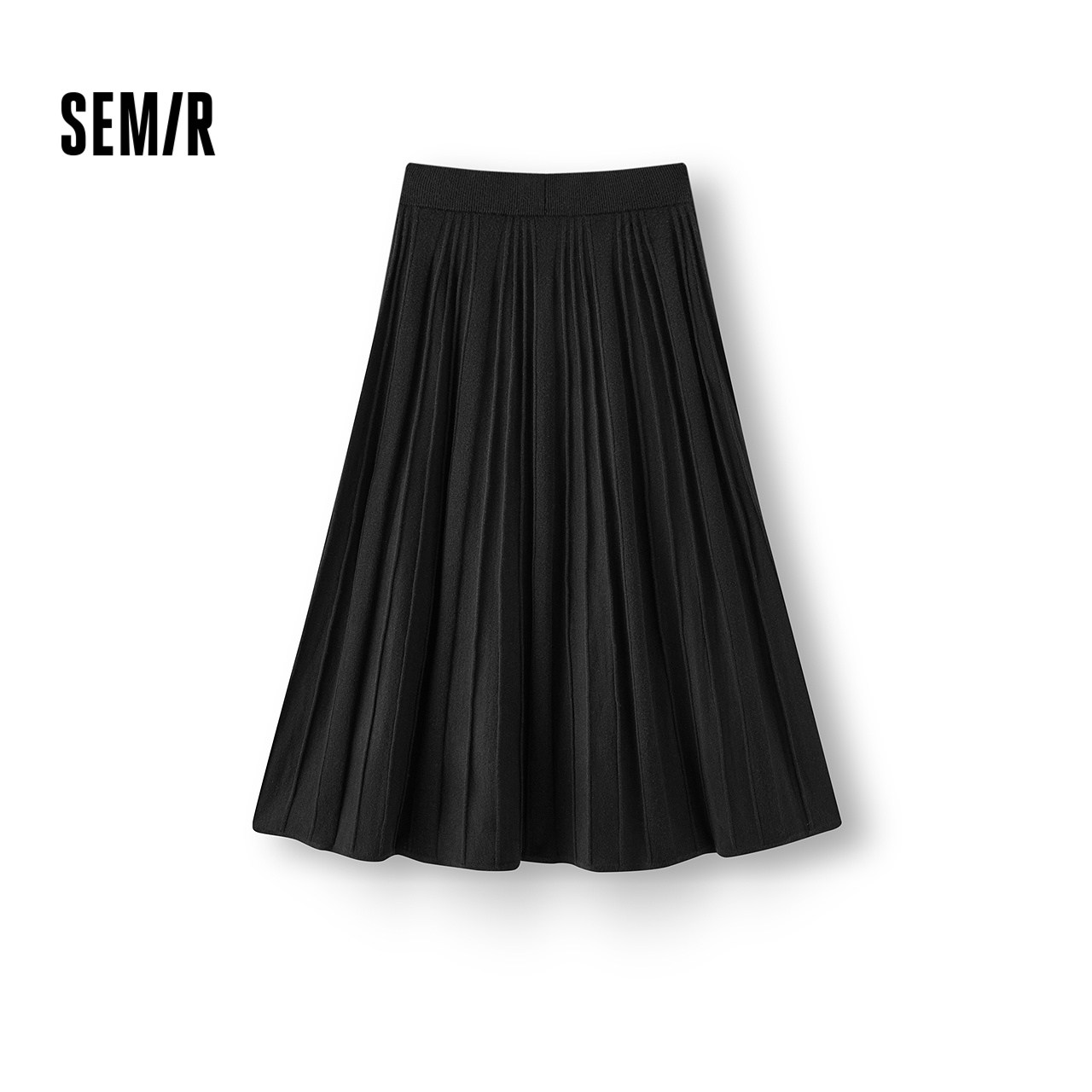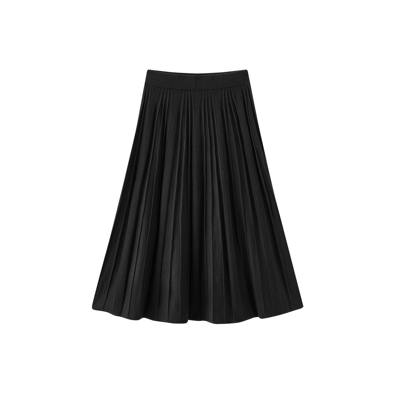 商场同款|森马半身裙女冬季黑色百褶裙2025新款简约优雅百搭长裙