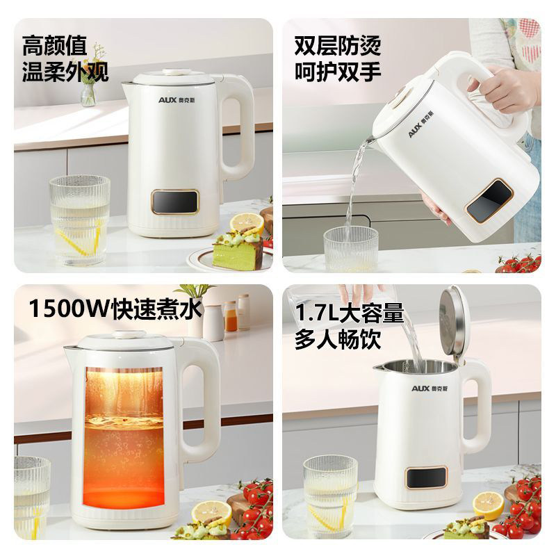 奥克斯电热水壶家用智能恒温304不锈钢煮开水壶大容量保温烧水壶