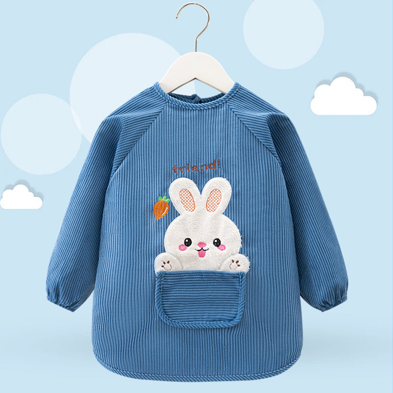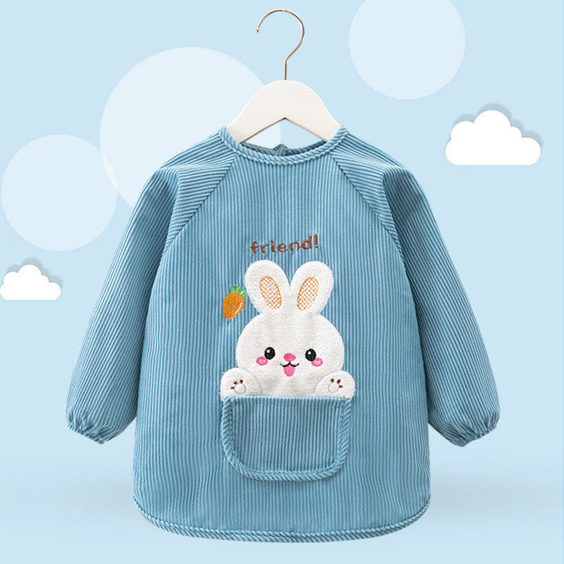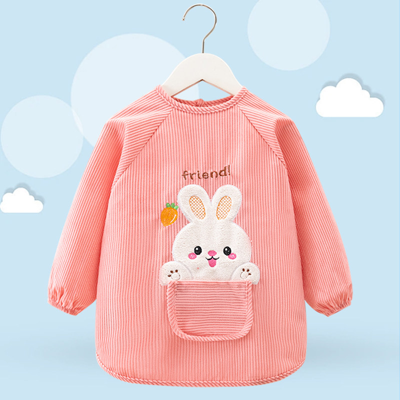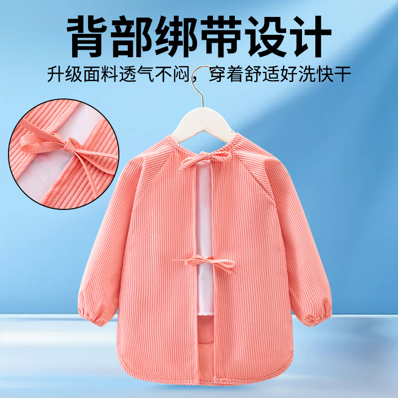 儿童罩衣秋冬条绒婴儿防水围兜宝宝吃饭衣幼儿园小孩防脏反穿衣