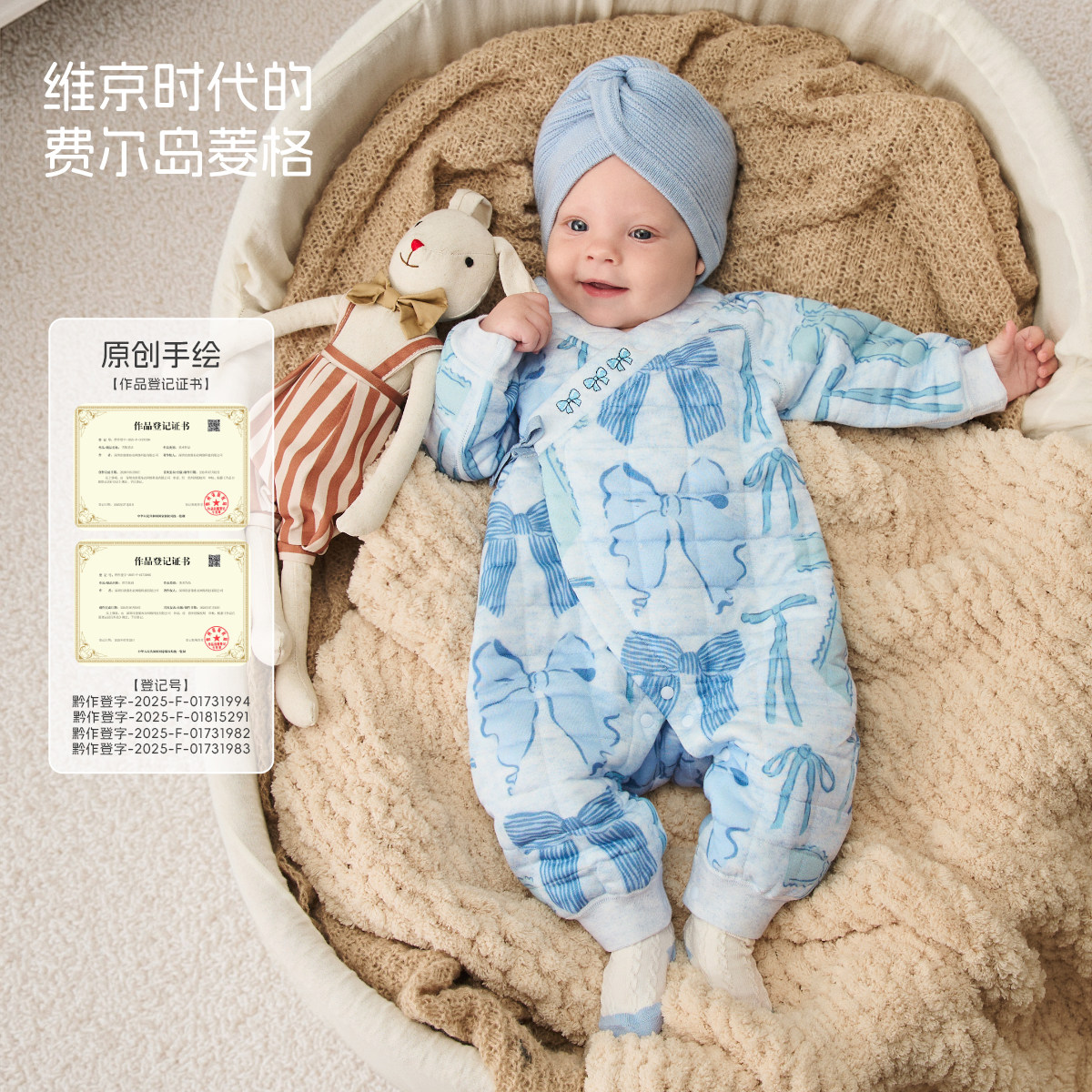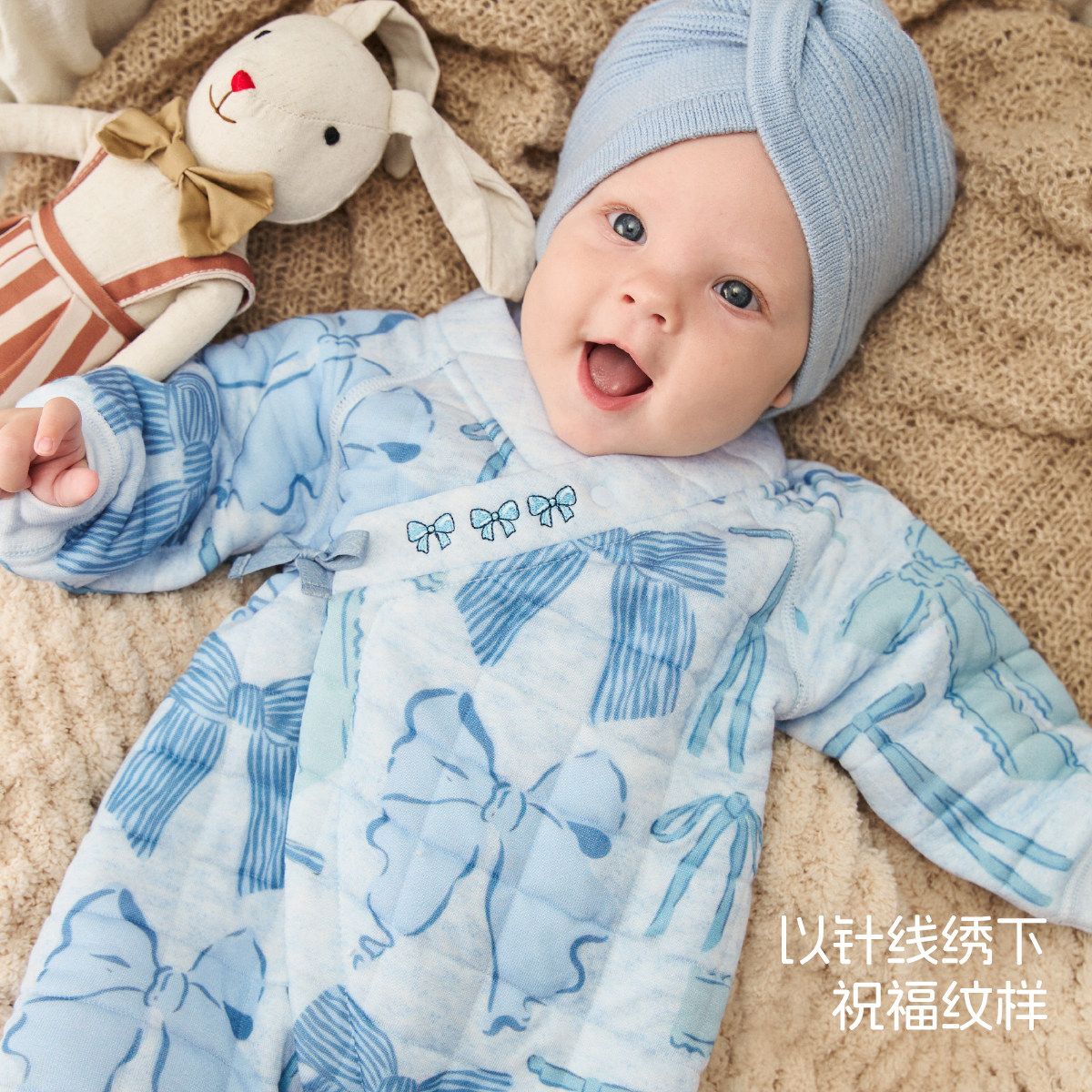 婧麒新生儿婴儿衣服秋冬夹棉满月纯棉初生宝宝秋装连体衣a类爬服