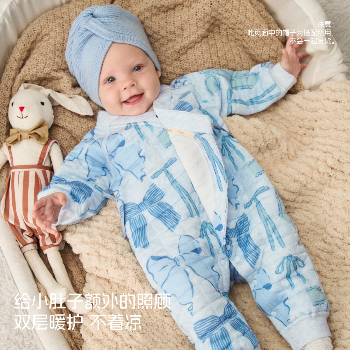 贝肽斯婴儿薄夹棉连体衣冬装外出新生幼儿宝宝衣服保暖空气棉睡衣