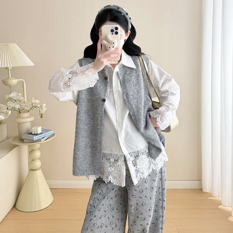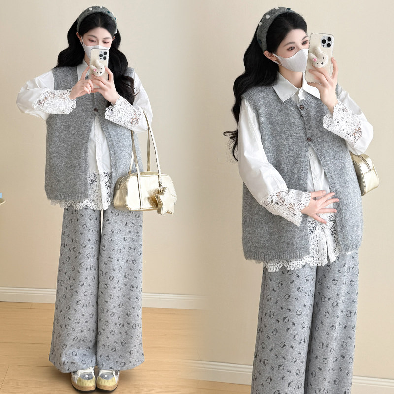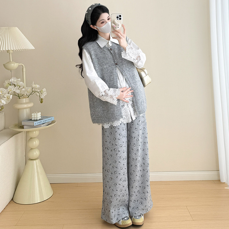 婧麒孕妇装冬装马甲上衣孕期洋气高级时尚猫咪裤子冬季孕妇套装女