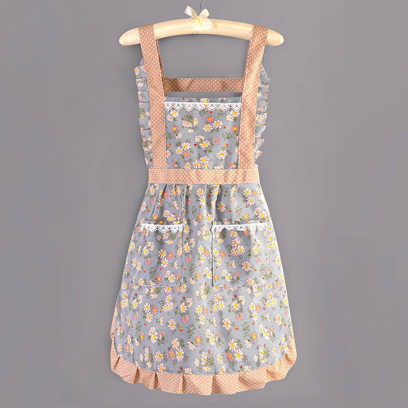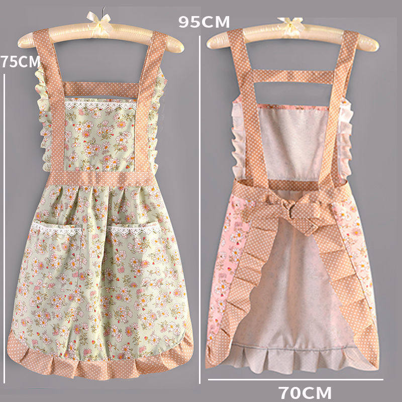 厨房韩版公主围裙可擦手防污背带帆布耐磨围兜罩衣做饭透气工作服
