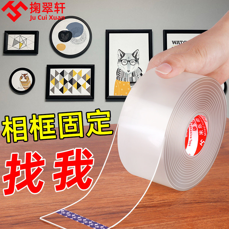 纳米高粘度强力无痕双面胶家装玄关自粘胶贴画透明家用粘胶纸块强粘双面不干胶贴防水背胶贴纸办公用粘贴纸