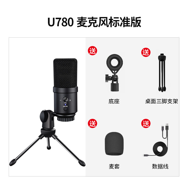 御葵U780电脑手机录音USB麦克风一键降噪 游戏语音配音电容麦话筒