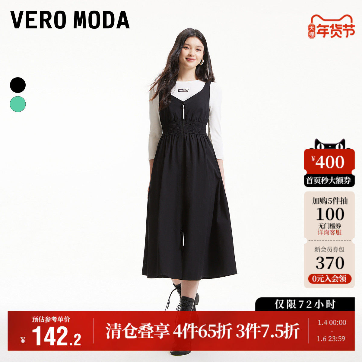 Vero Moda奥莱连衣裙秋季新款时尚机能撞色背心裙两件套裙子流行