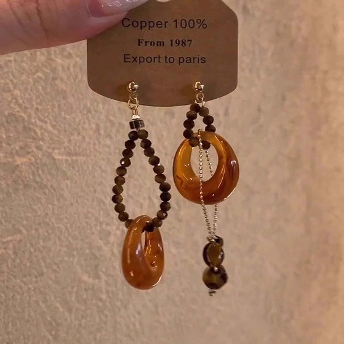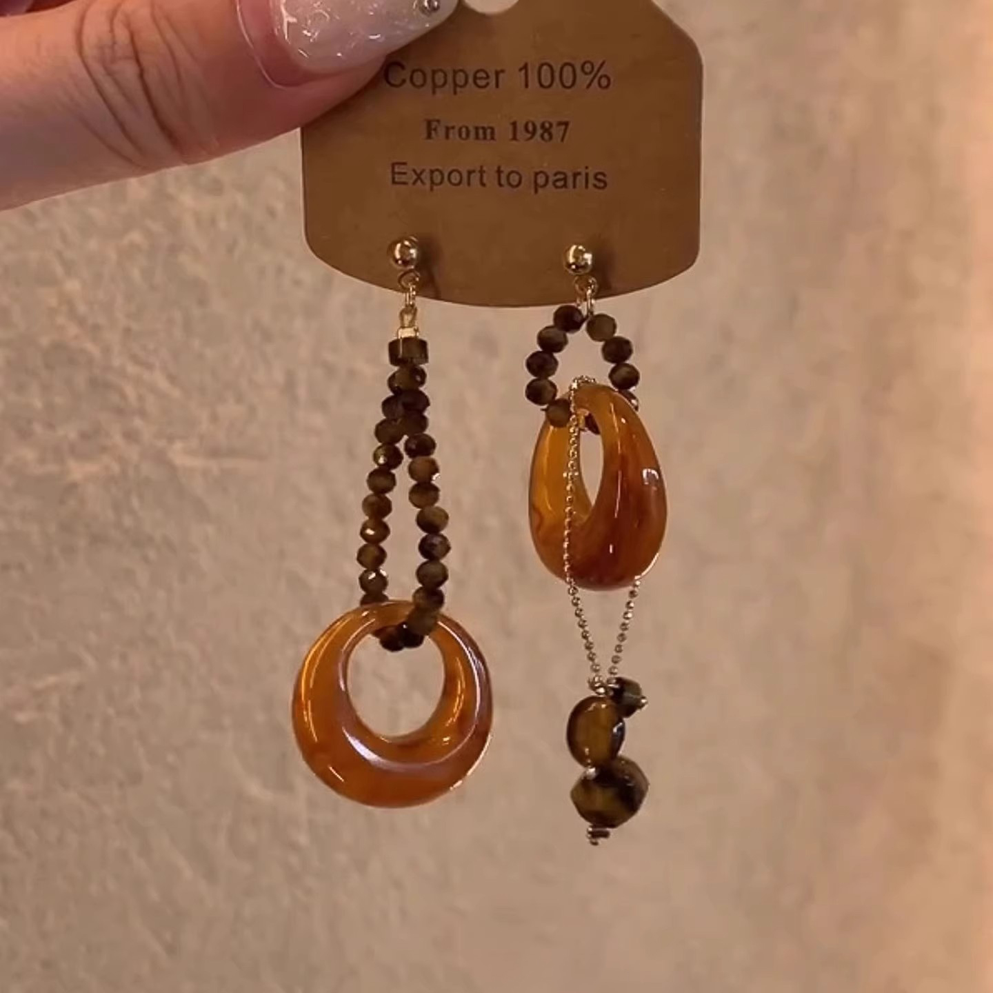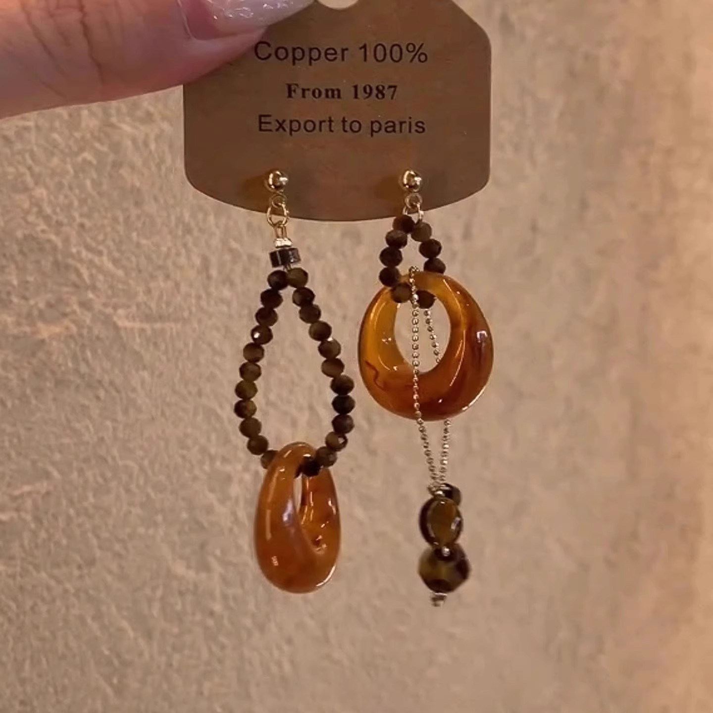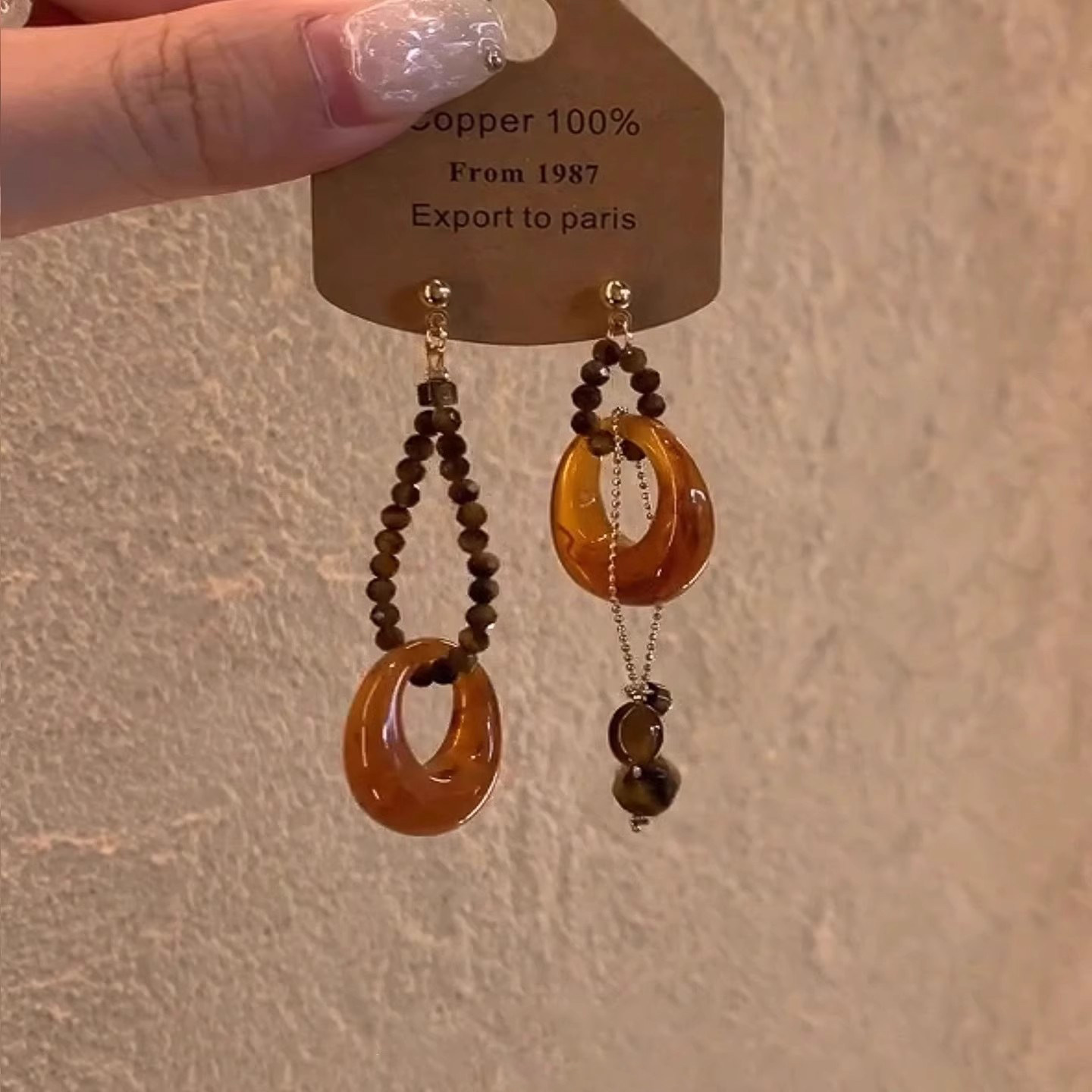 秋意渐浓 复古民族风串珠流苏耳环女款新中式不对称气质秋冬耳钉