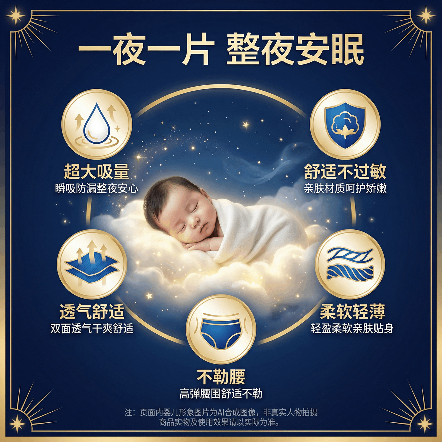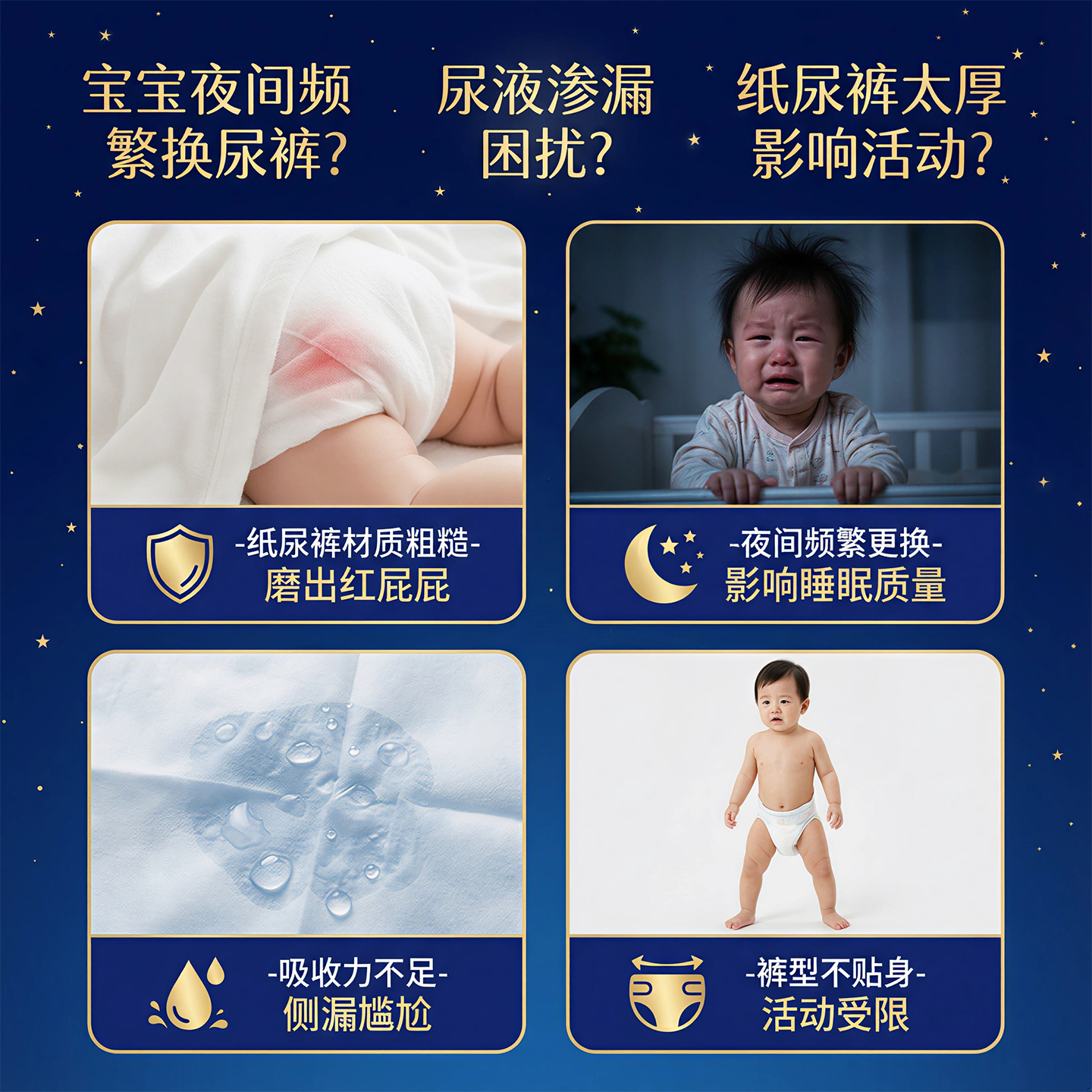 家得宝蚕丝蛋白夜行裤新生儿护臀透气纸尿裤拉拉裤男女防漏尿不湿