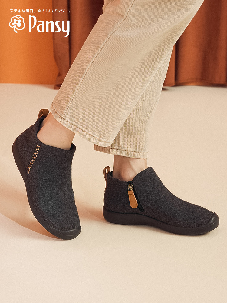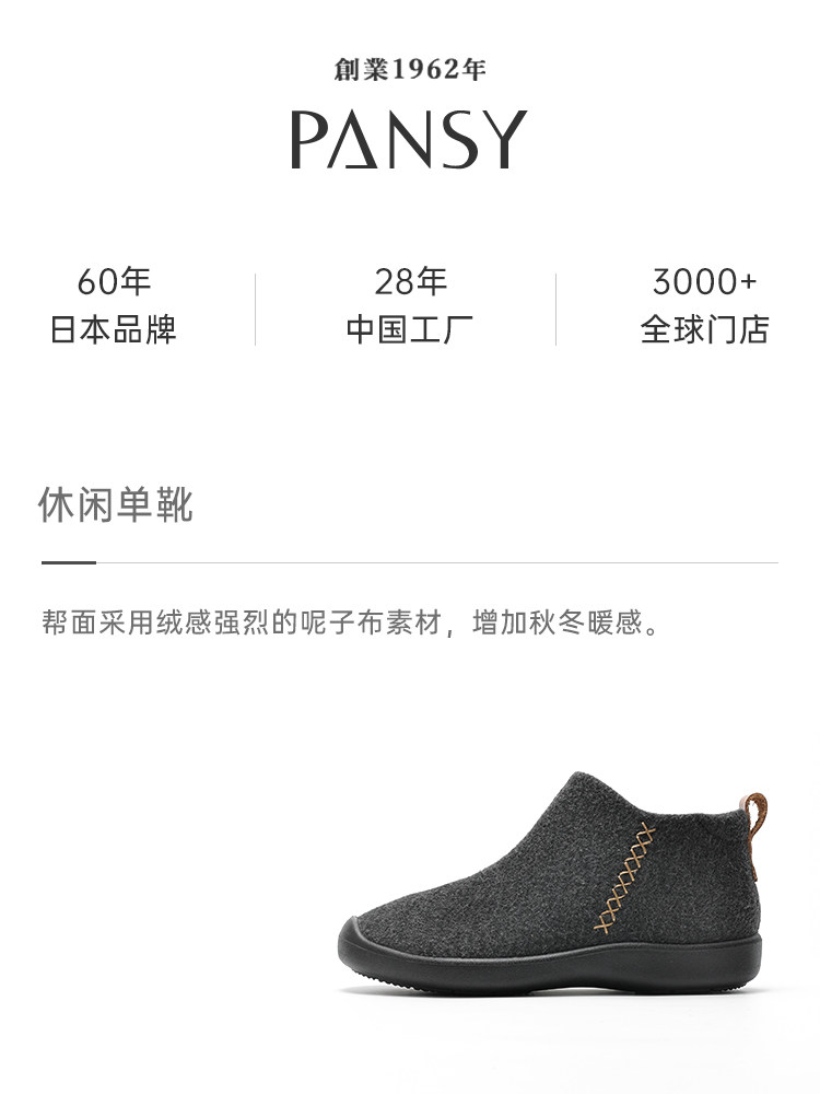Pansy日本女鞋平底防滑舒适软底气质百搭舒适鞋活力秋冬款4074