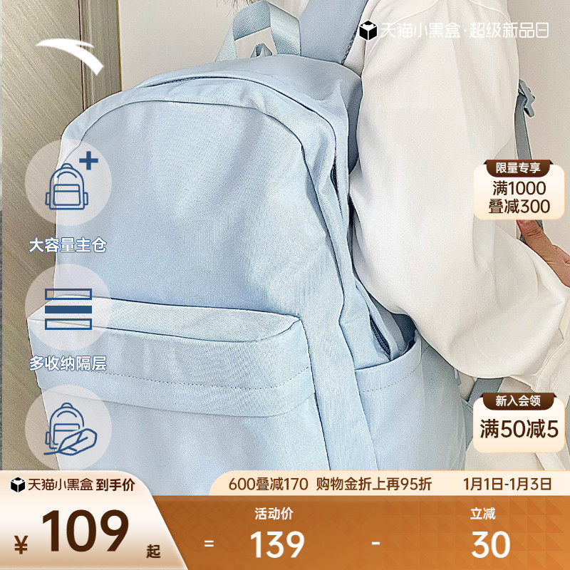 安踏双肩包学霸包学生电脑包中学生大学生大容量背包书包初中女生