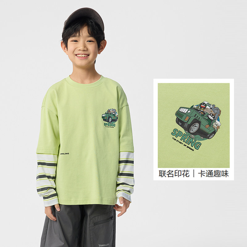 [7A抗菌小魔怪]齐齐熊男童t恤长袖春秋款宝宝假两件纯棉儿童女童