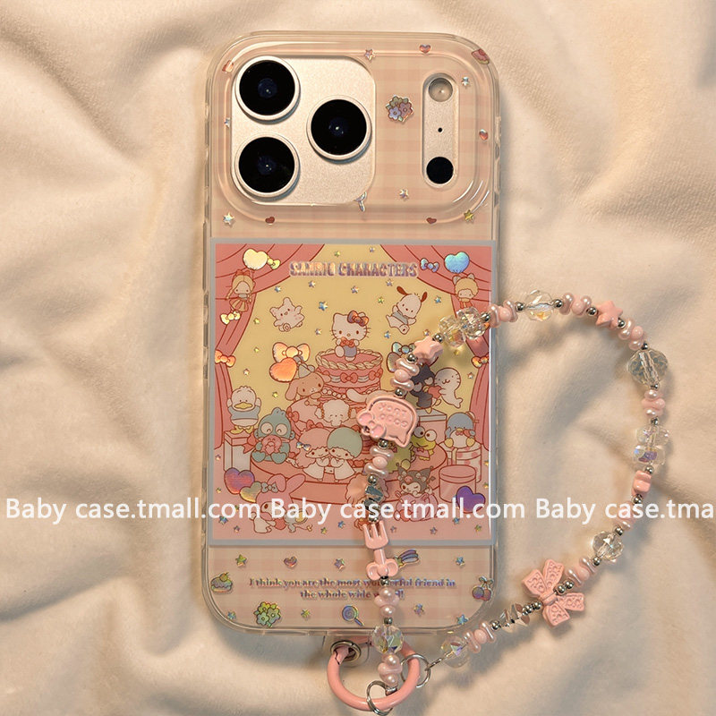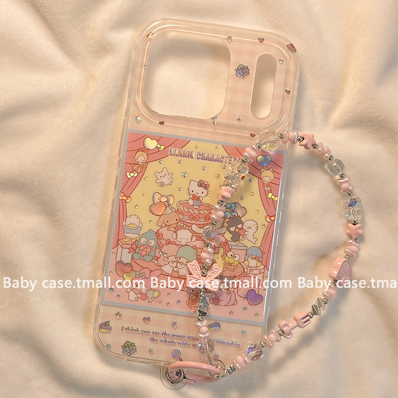 北比少女粉色格纹鎏金猫咪适用苹果17promax手机壳iphone16新款15pro带链条17卡通14pm电镀13日韩风16pro全包