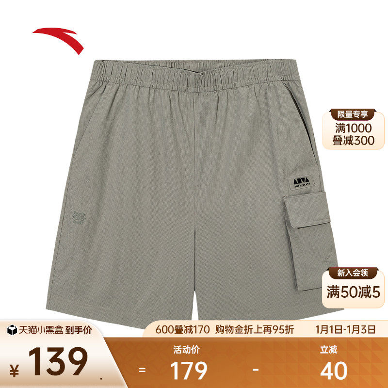 安踏潮流复古梭织短裤男女夏季新款工装休闲百搭五分裤172538501