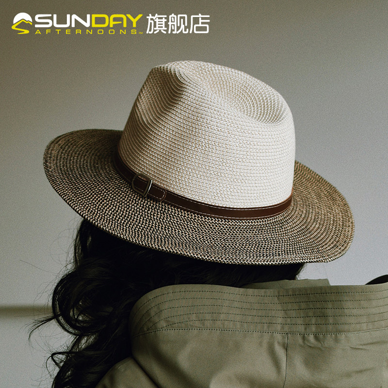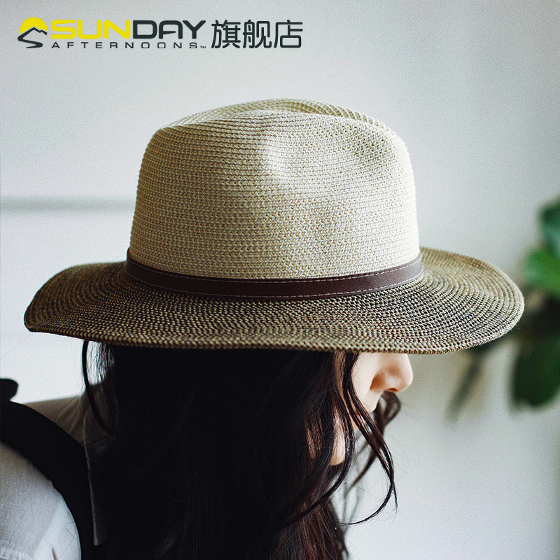 SundayAfternoons女士防晒太阳遮阳编织大檐爵士帽礼帽沙滩海边