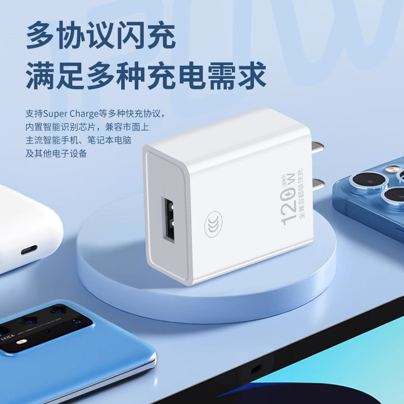 3C认证120W全兼容闪充快充安卓充电器手机适用华为荣耀 vivo iqoo 小米oppo充电头数据线Type-C套装盒装批发