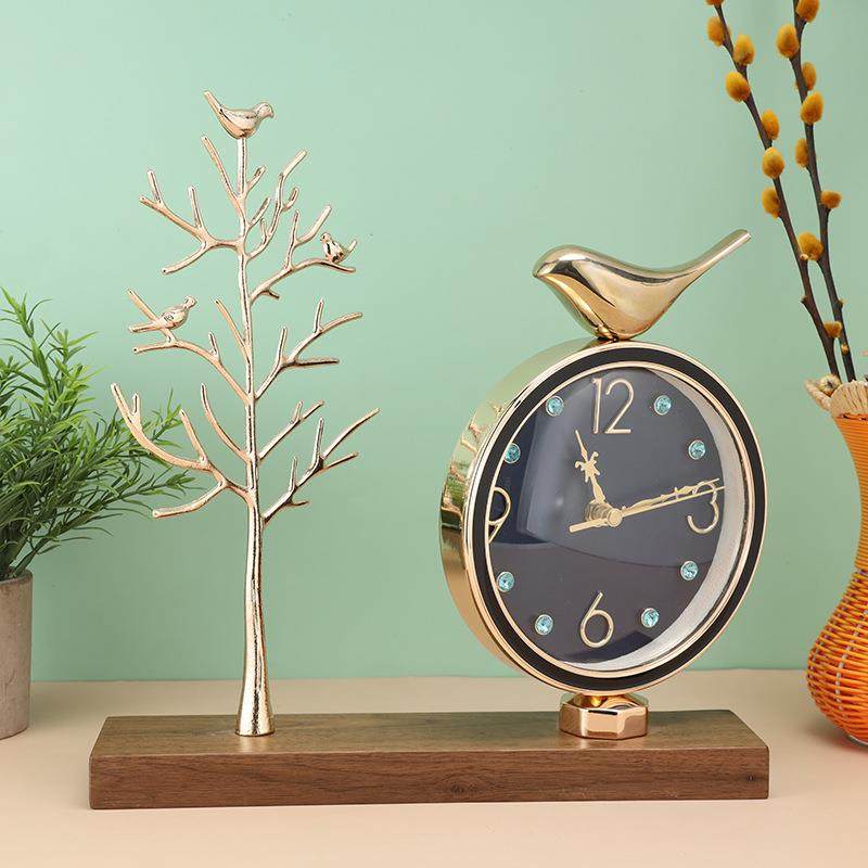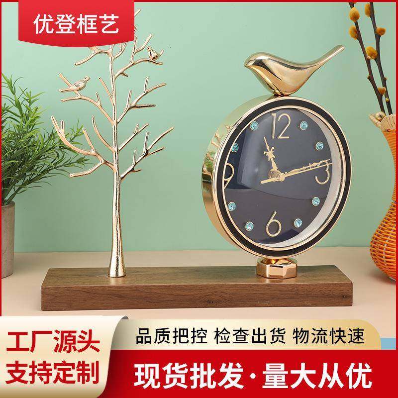 黑胡桃实木底座镶金属家庭商用摆台座钟 多功能挂壁台钟 简约工艺