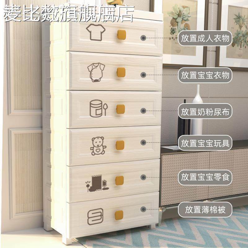 麦比梵加厚收纳柜子抽屉式儿童宝宝衣柜塑料多层整理箱储物柜家用五斗柜摆件垫垫床笠拉车