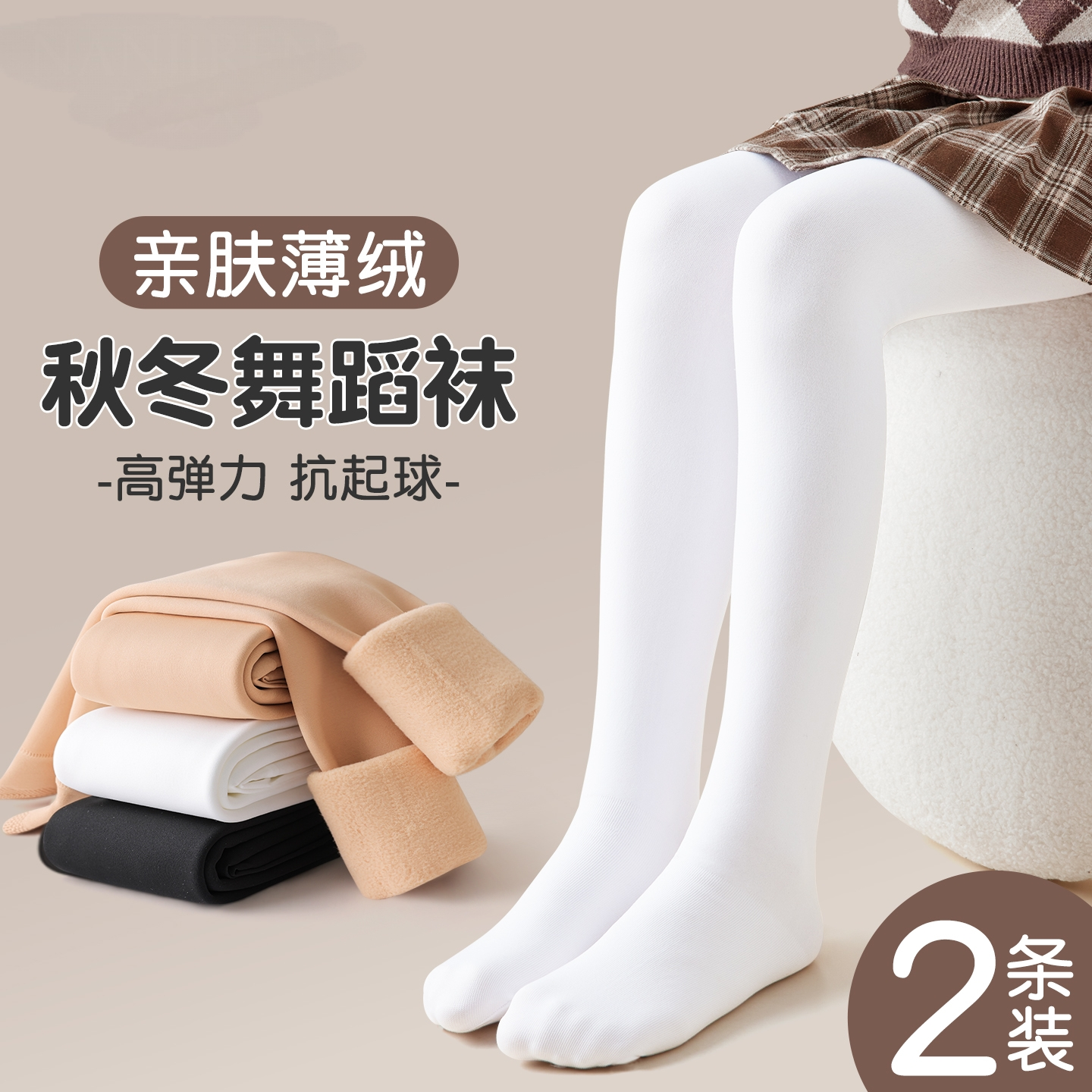 女童加厚舞蹈袜秋冬款白色打底裤丝袜儿童连裤袜加绒袜子薄绒薄款