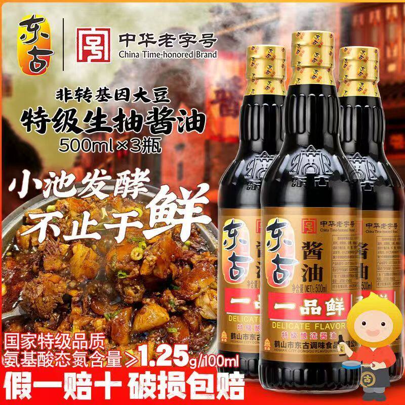 东古一品鲜特级酱油500ML玻璃瓶黄豆酿造酱油生抽中华老字号传统