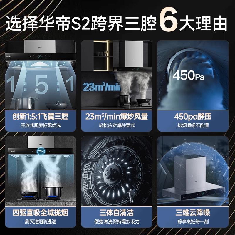 华帝三腔S2抽油烟机燃气灶套餐煤气灶具厨房三件套装官方旗舰店