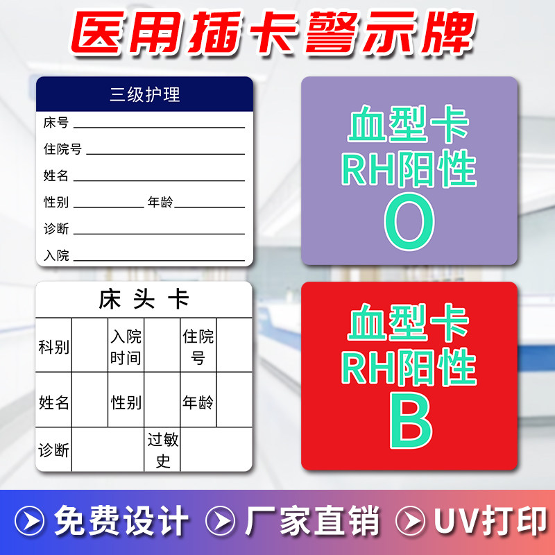 护理床头卡标识牌医院病房防跌倒护理插卡牌饮食安全警示牌级别牌