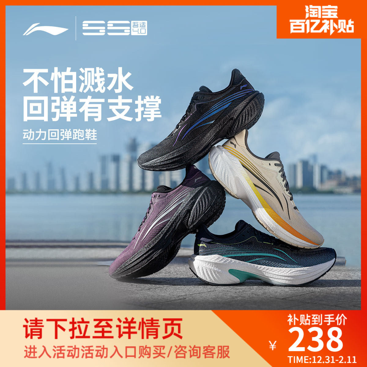 安踏毒刺6代丨缓震回弹防泼水跑步鞋男鞋冬季防滑耐磨软底运动鞋