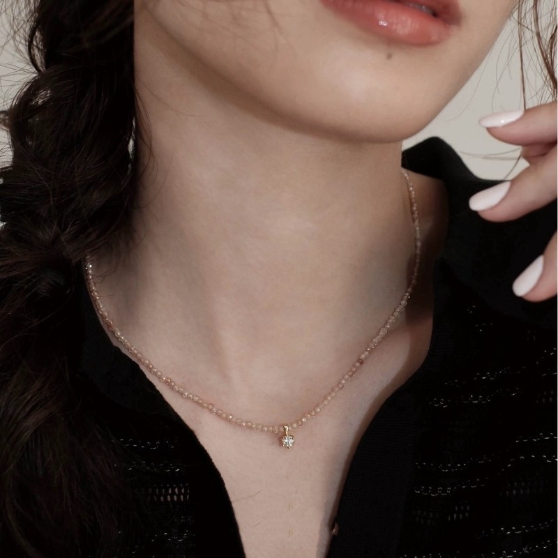 2025春夏锁骨链轻奢精致香槟水晶锆石莫桑石串珠项链配饰女配饰