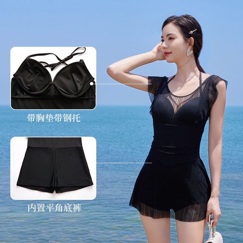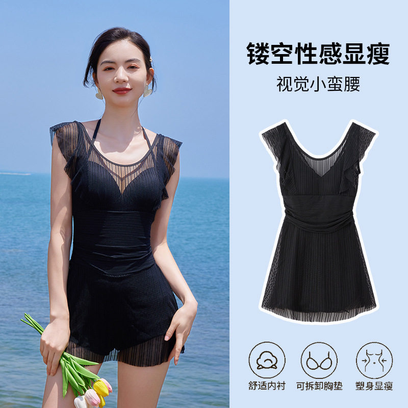 连体泳衣女款2024年新款爆款微胖女孩mm高级感网红款泡温泉游泳装