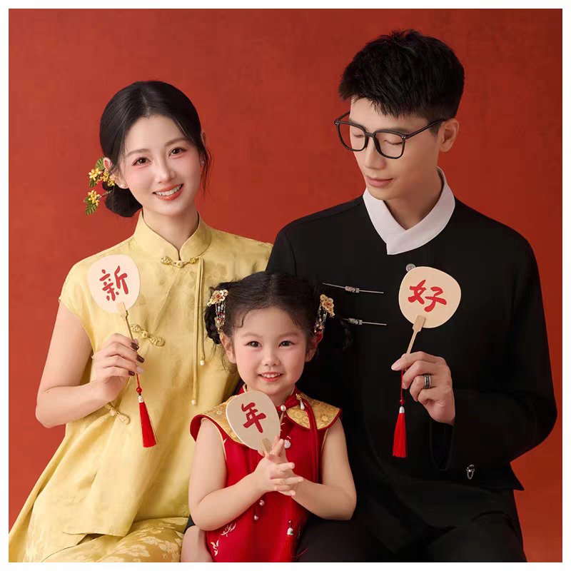 马年2026全家福亲子拍照道具马上有钱手拿板手拿扇子灯笼装饰摆件