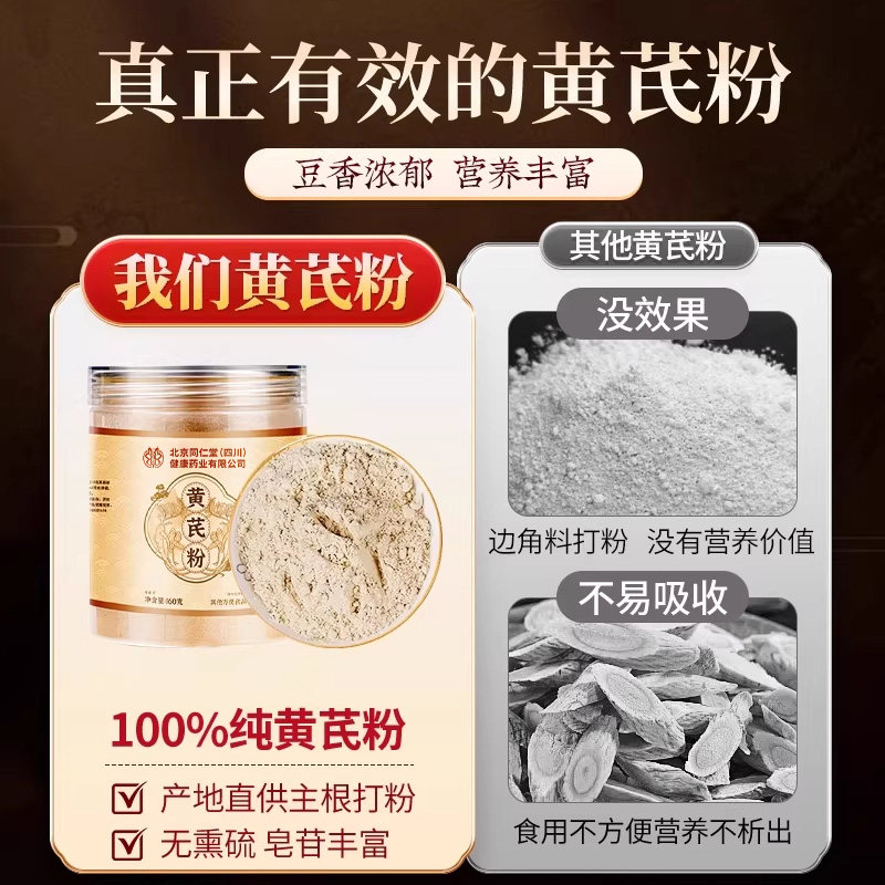 北京同仁堂野生黄芪粉中药材官方旗舰店正品补气养血正宗甘肃岷县