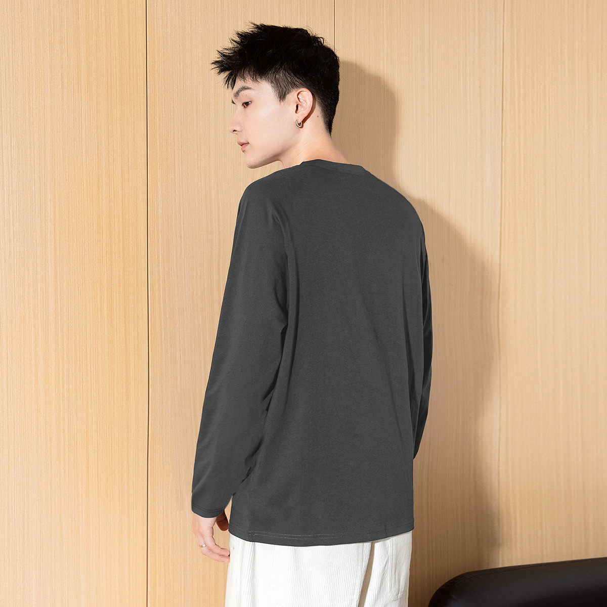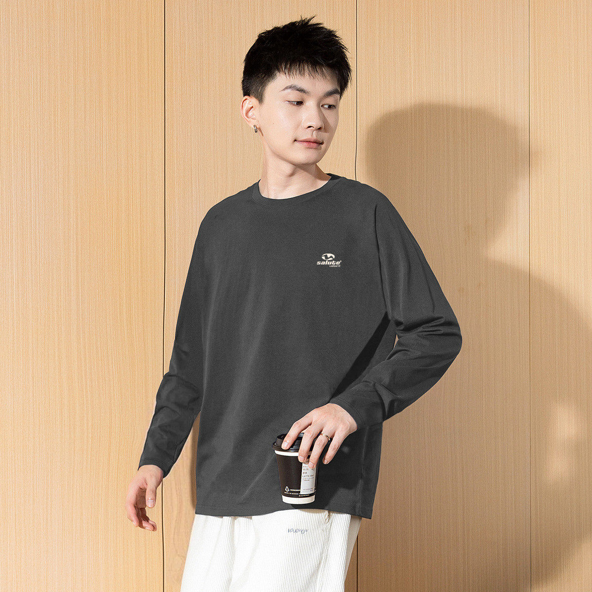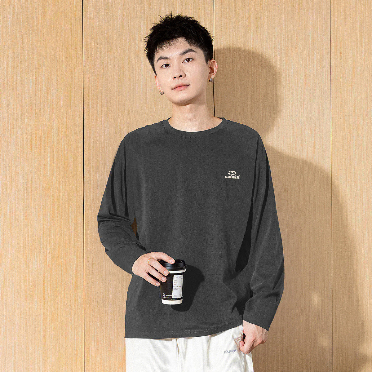 唐狮春秋新款长袖T恤男小细节宽松圆领黑色内搭休闲打底衫潮TE