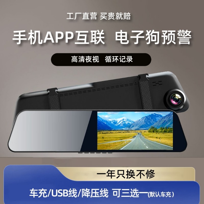 汽车后视镜行车记录仪2025新款免走线前后双摄车载倒车影像电子狗