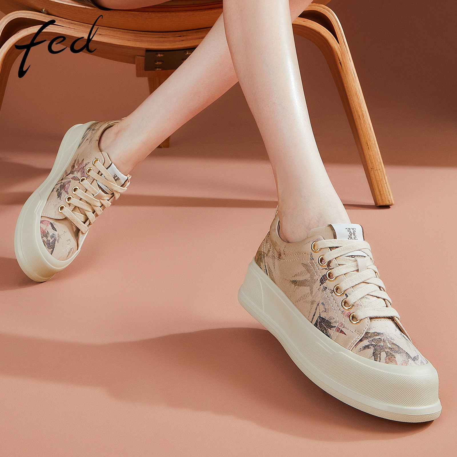 fed时尚休闲鞋秋季新款女鞋增高鞋国风板鞋帆布鞋女D0807-YAB096