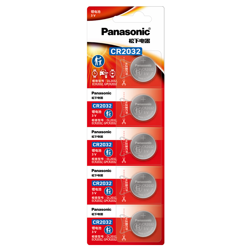 松下纽扣电池5粒CR2032/CR2025/CR2016电子3V适用摩托汽车钥匙遥控器CR1620/CR1220/CR1616/CR1632/CR2450
