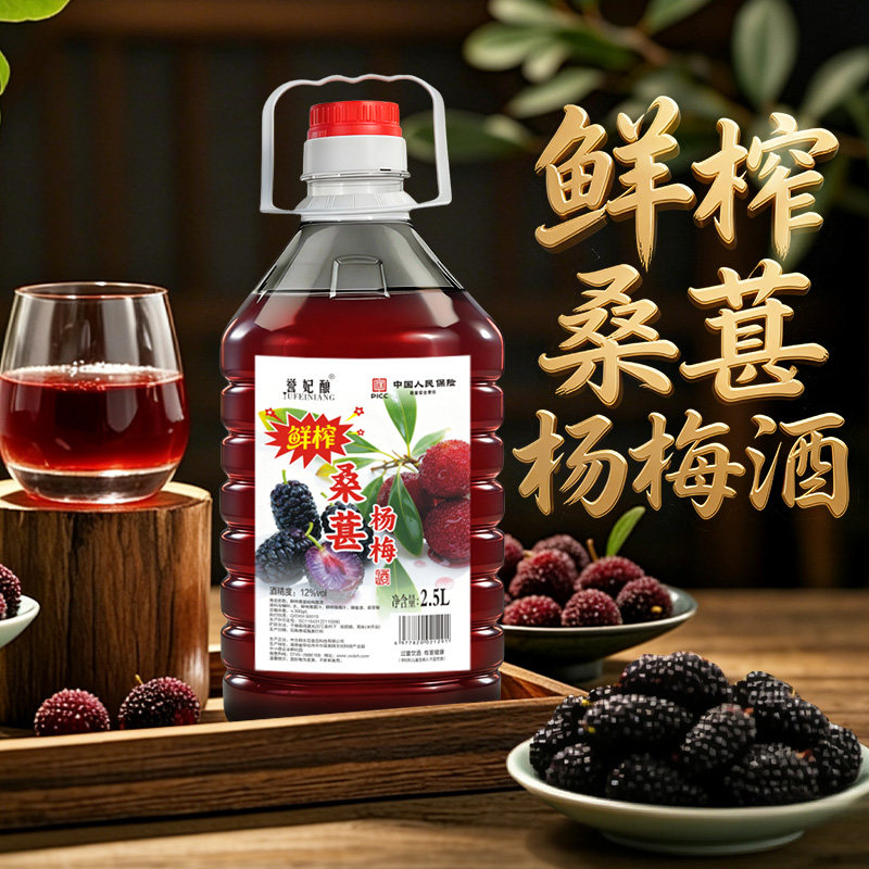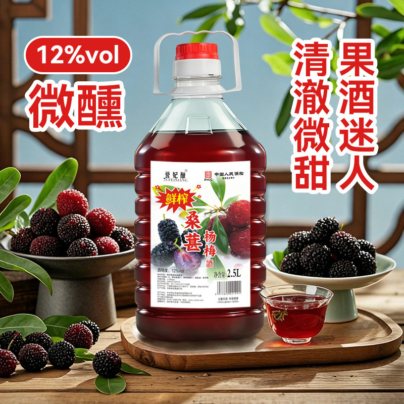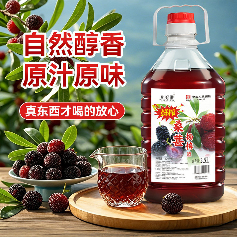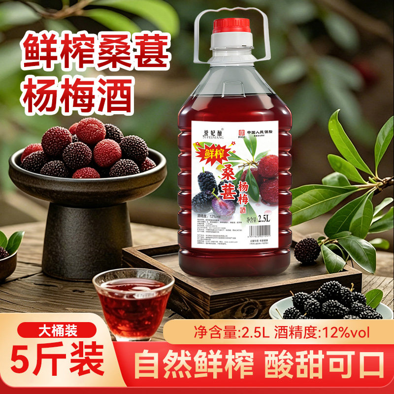 鲜榨桑葚杨梅酒正宗果酒桑葚酒果汁原汁低度微醺甜酒水果桶装