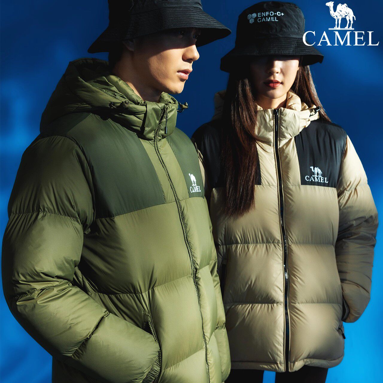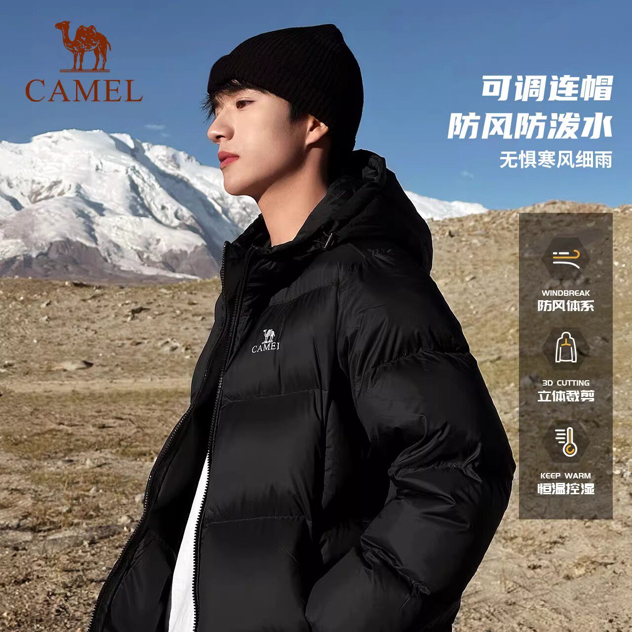 [骆驼火炉]运动三防羽绒服男冬季情侣加厚连帽防水面包羽绒外套女