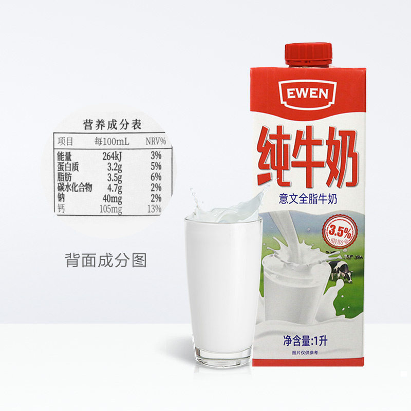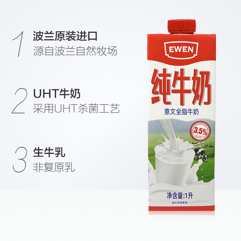 【下拉享优惠】波兰进口意文全脂纯牛奶1L*6盒整箱营养早餐牛奶