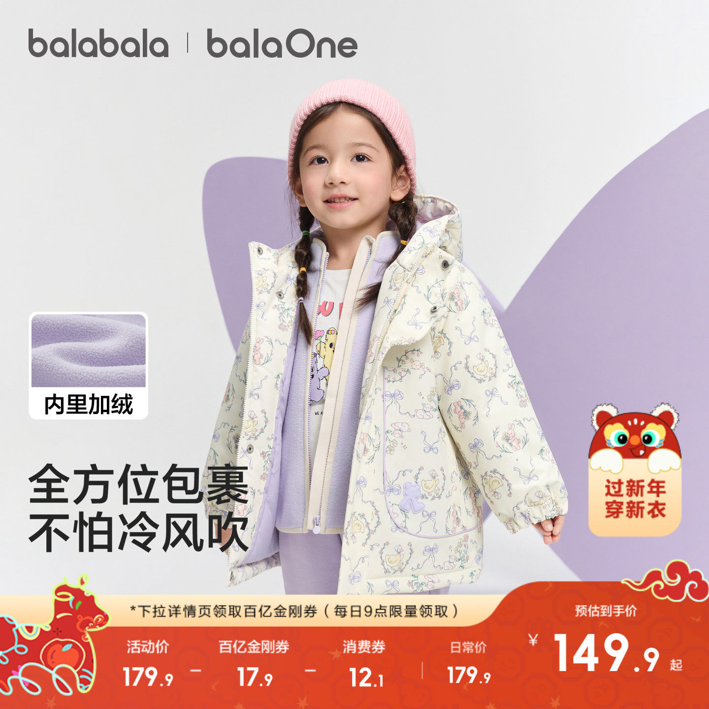 巴拉巴拉童装儿童上衣男童外套女童两件套秋冬2025新款三防摇粒绒