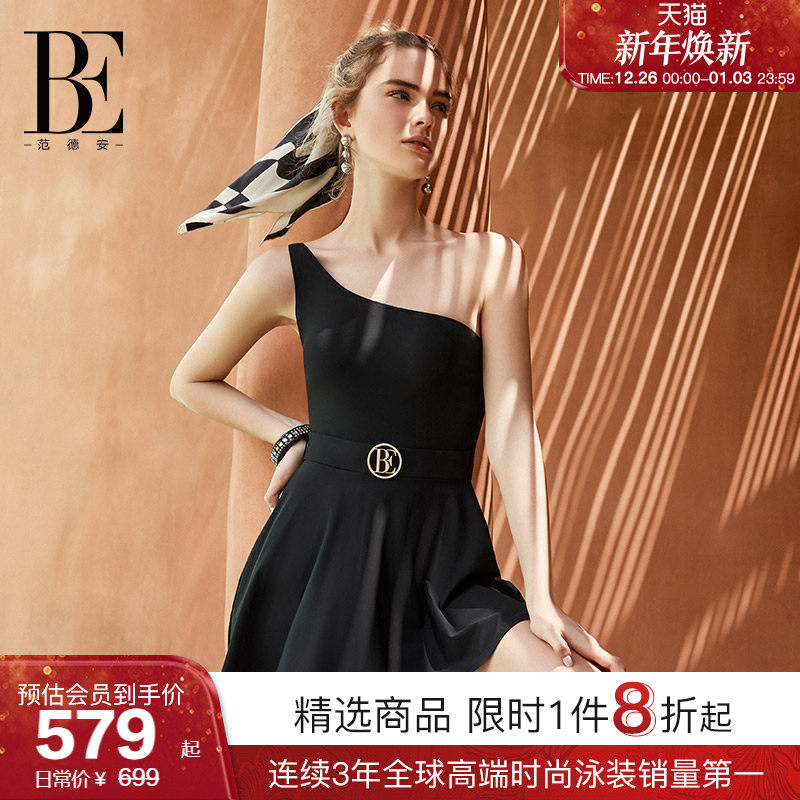 BE范德安小黑裙系列连体泳衣女士 时尚斜肩高级感裙式显瘦绝美