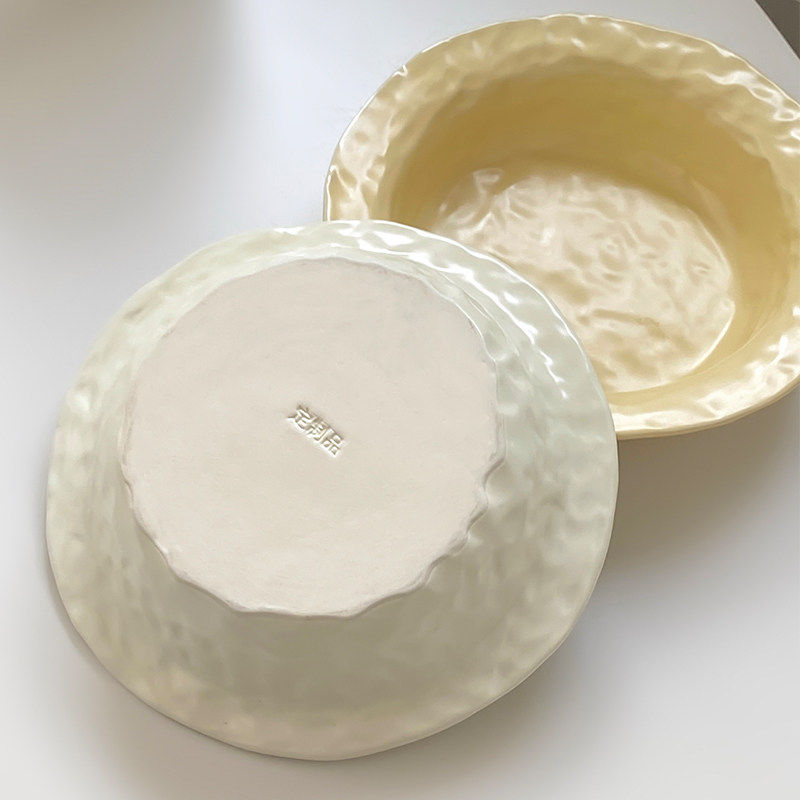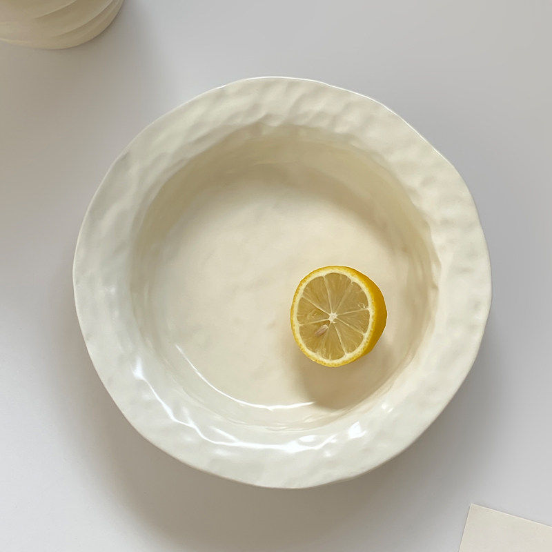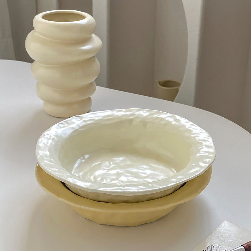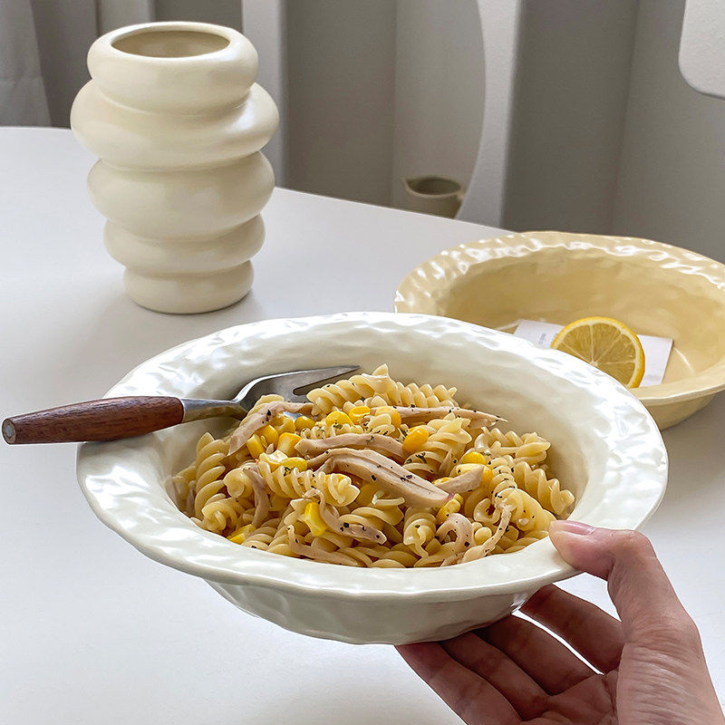 日式手捏纯色奶油感陶瓷草帽盘家用高级感意面餐盘沙拉盘汤盘深盘