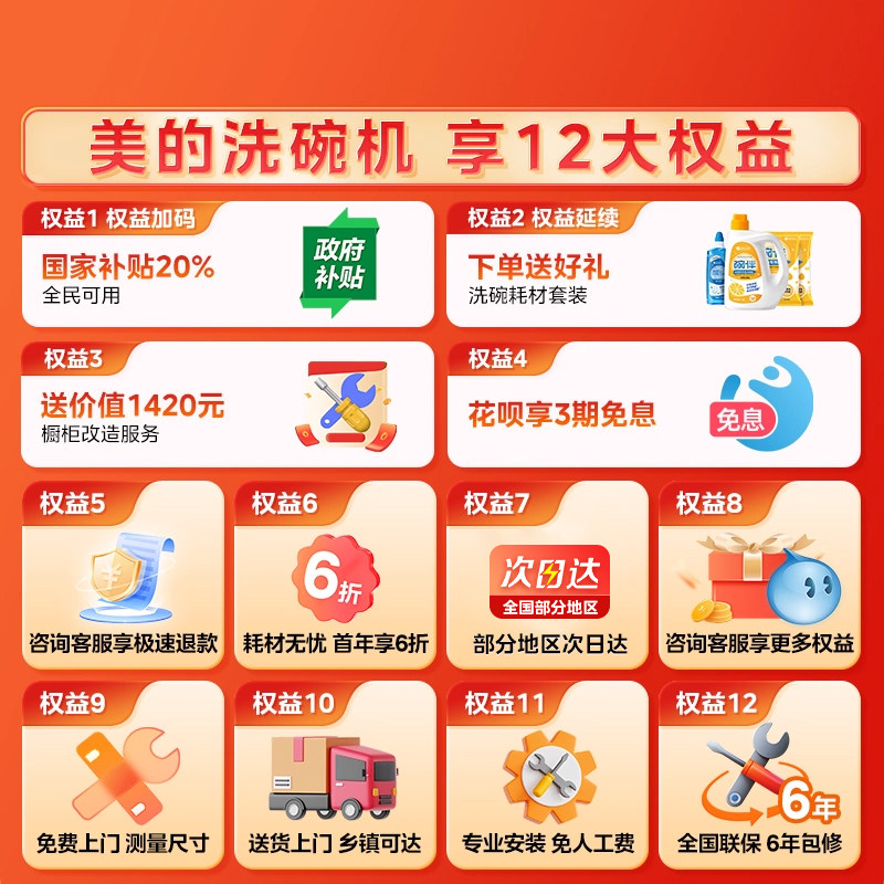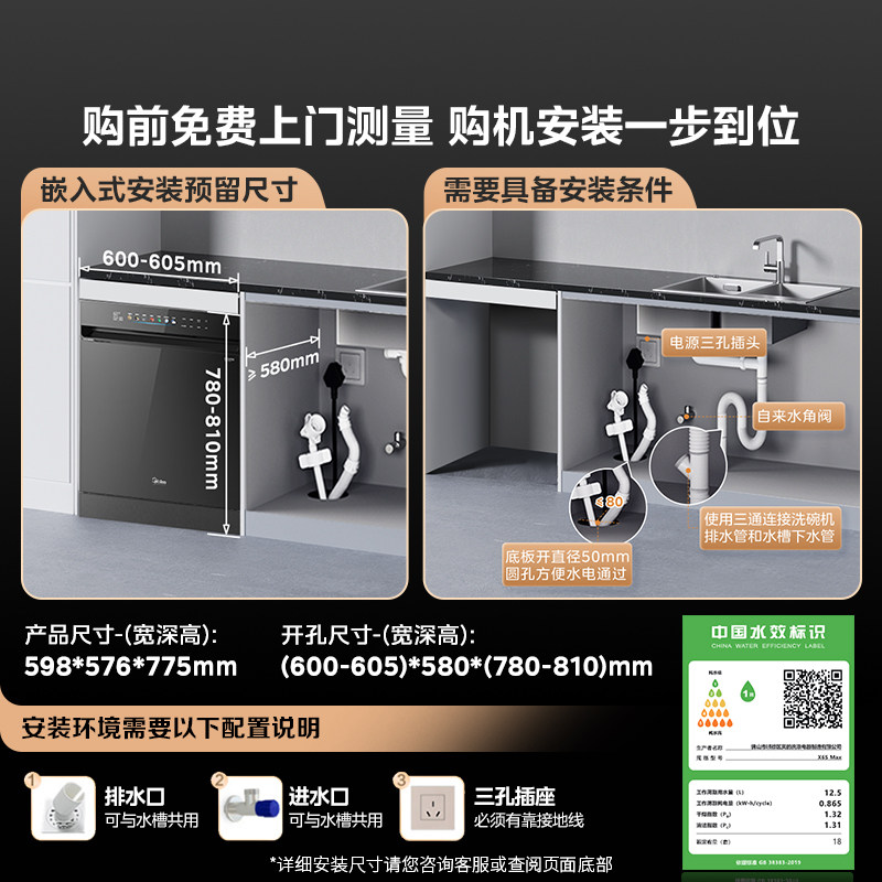美的X6SMax变频万向洗碗机热烘除菌消毒一体18套智能大容量嵌入式