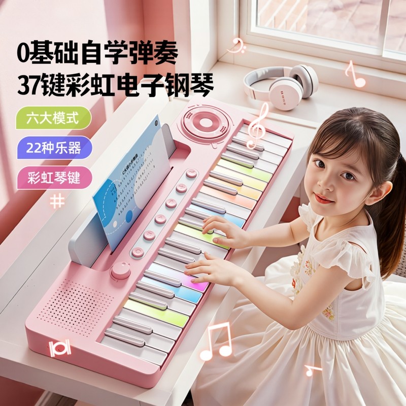 37键彩虹电子钢琴儿童初学入门可弹奏乐器小女孩宝宝玩具生日礼物