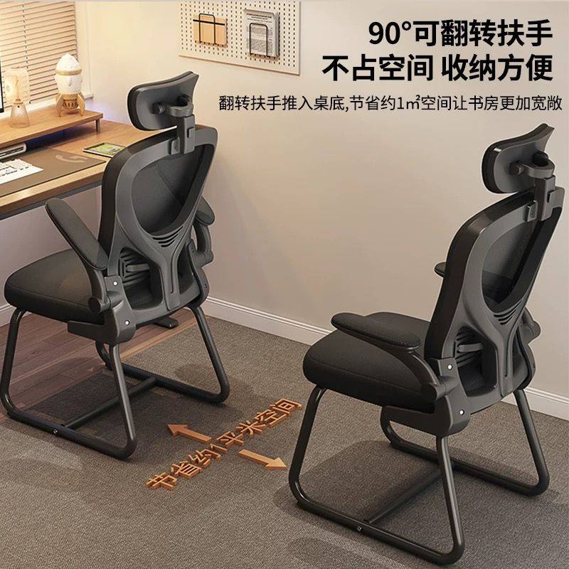 电脑椅家用办公椅护腰舒适靠背椅弓形网布椅棋牌室椅子会议会客椅
